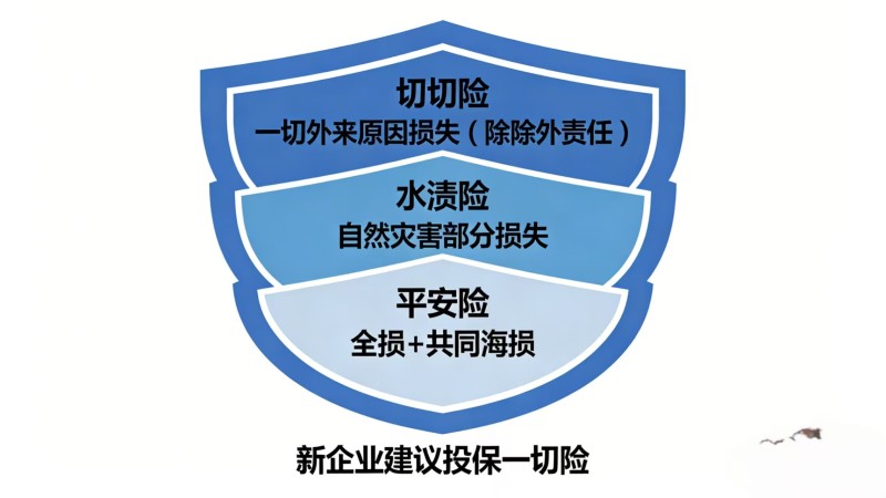 一切险 (All Risks):承保范围最广,除除外责任(如战争、罢工、货物本身缺陷)外,承担一切外来原因造成的损失。对于新企业,强烈建议投保“一切险”,图个安心。