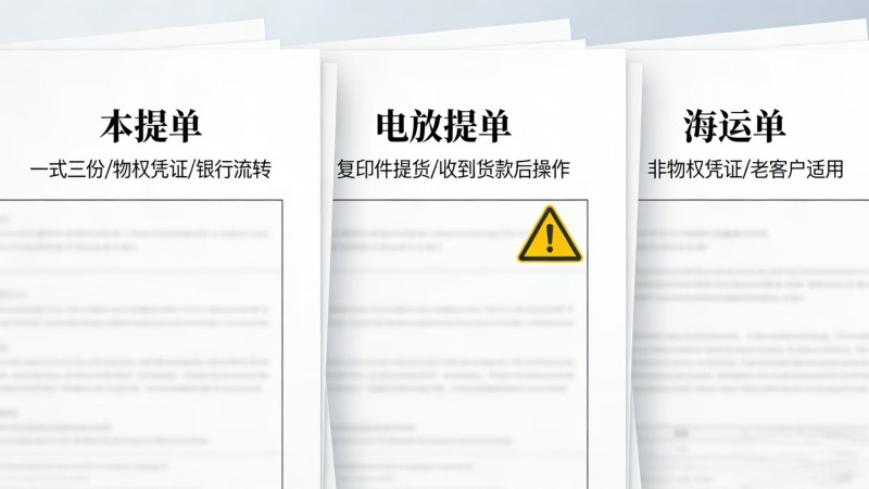 电放提单 (Telex Release):为加快流程,发货人向船公司申请,允许收货人凭提单复印件和身份证明提货。风险:一旦电放,即失去货权控制,务必在收到全部货款后再操作。